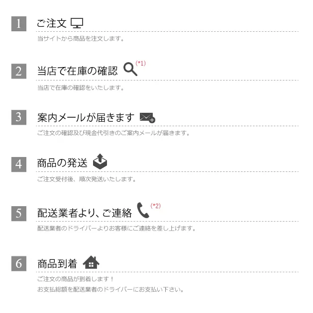 | 【代金引換方法】 ※当店は全商品手数料と送料;無料です。 ※決済方法は、現金のみのお支払(現金代引)になります。 ※ご注文確認画面にて、選択(代金引換 / 代引き)します。詳しくはこちら ※お支払総額は商品をお受取の際に配送のドライバーへお支払下さい。 ※おメールやlineやお電話にてご注文の確認をさせていただく場合がございます。 【代引き到着時間について】 ※代金引換き:(商品発送後)10日-20日間くらいにお宅に到着できます。※特別な場合を除き,遅延する場合がある。※そのときは、わかってください。 ※お時間のご要望がございましたら、銀行振込をご利用下さい。銀行振込は一週間以内にお届け下さい。 【代引きご利用のご注意】 ※ご不在の場合、到着日予定日7日内までにお受け取りが確認出来ない場合、商品の性質上、商品を戻させて頂く場合がございます予めご了承下さい。 ※お電話にてご注文の確認をさせていただく場合がございます。お電話にて確認が取れない場合、自動キャンセルとなりますことを予めご了承下さい。 ※当店での代引き注文は、現金による代引きのみとなっております。(クレジットカード,デビットカードによります代引きはご利用することが出来ません。) ※注文の商品が到着するまで、何の費用も発生しませんので。 ※商品発送後、キャンセルはできませんのでご了承ください!! ※当店は唯一の全额無料代引き店です。※商品到着後、受け取りが拒否された場合。※当店は損失が大きい。※慎重に考えて注文してください。※誠実に対応してください。 ※代引の手続きは煩雑ですが,ご了承ください。※不愉快なことが起こらないようにする。※ご理解ください,よろしくお願いします。 ※一部地域 離島により代引きをご利用いただけない場合がございます。 【配送業者について】 ※お買い上げ総額20万円未満 EMS(国際スピード郵便)代金引換ゆうパック ※お買い上げ総額 20万円以上 佐川急便e-コレクトサービス ※お買い上げ金額によって配送業者が変わります(状況により 配送業者が変更になる場合がございます) 【代引手数料】 ※手数料無料 【お受取までの流れ】 |